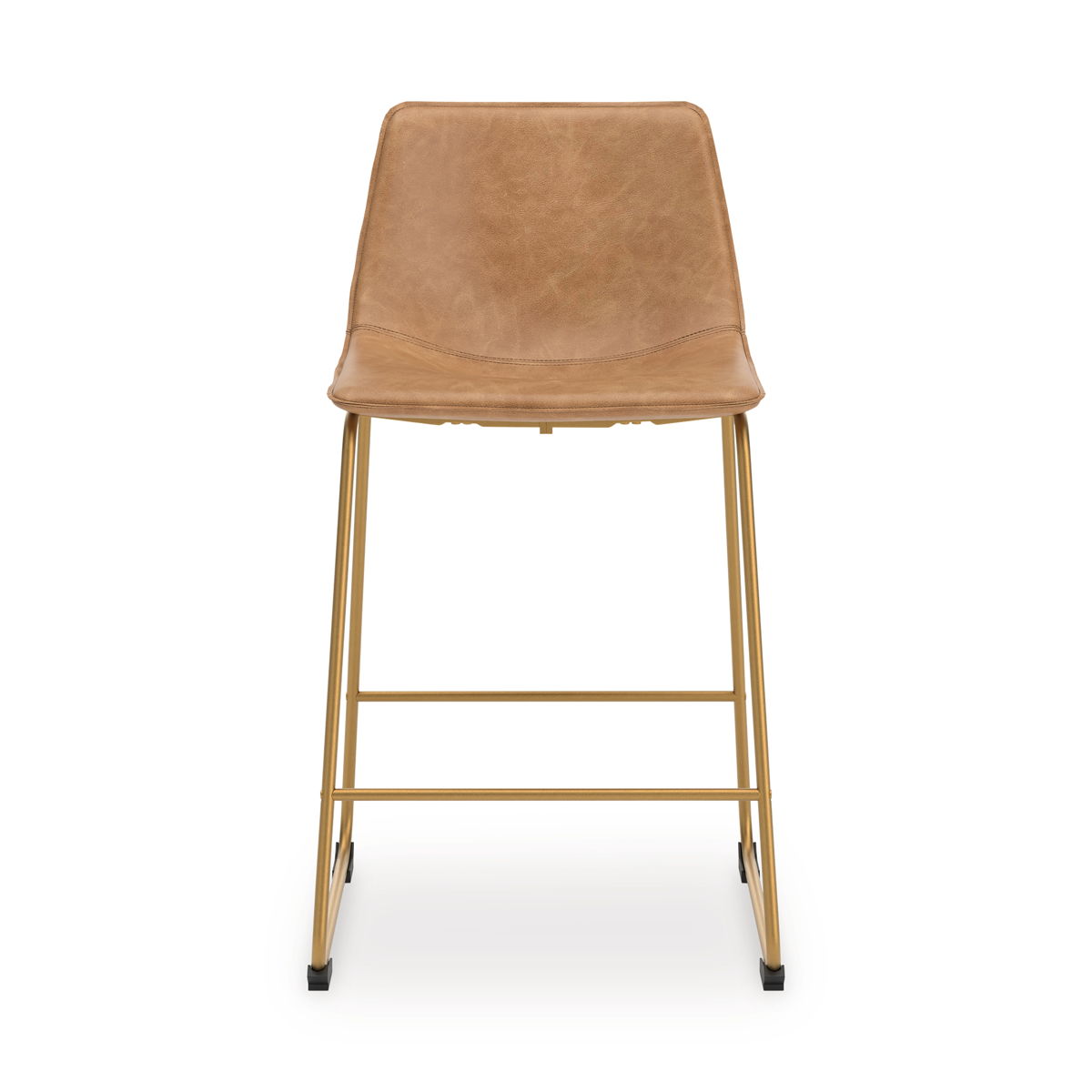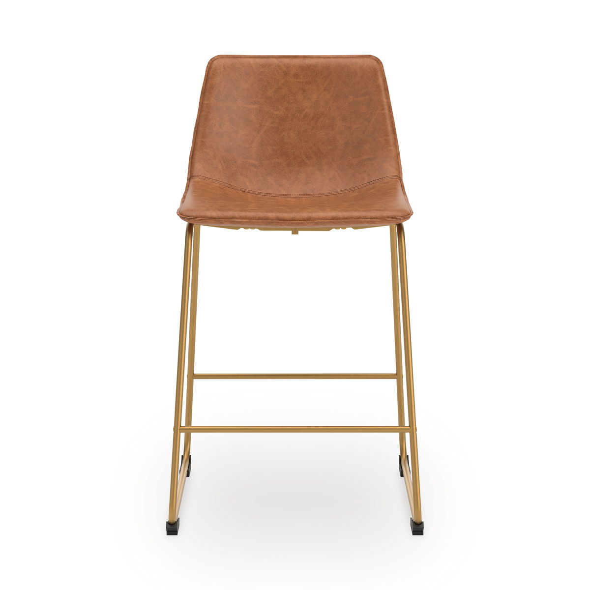 Dine in casual contemporary fashion with this counter height bar stool. A retro-inspired bucket design gives it a mid-century vibe. Sleek faux leather and a luxe goldtone frame bring the look right into the present. And with a contoured seat for your comfort, it dishes out style and convenience all in one.