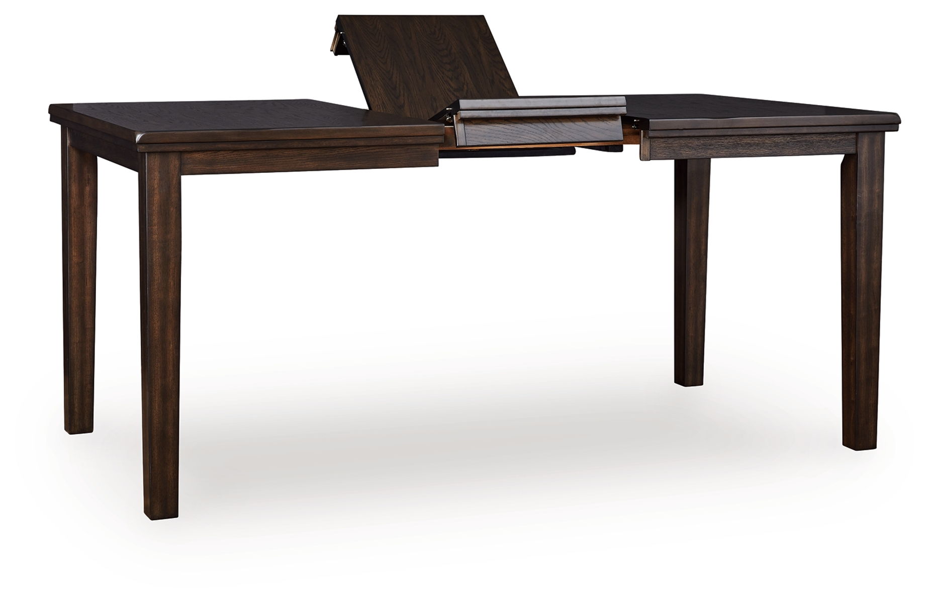 Take clean-lined, classic styling and touches of vintage inspiration. Top with a deep, complex finish for newfound sophistication. Now that’s a look you can live with. Sporting a straightforward farmhouse profile, this dining extension table easily accommodates guests thanks to a built-in butterfly leaf extension that’s so simple to operate. Details including rounded-off corners add a gently worn, casual sense of charm.
