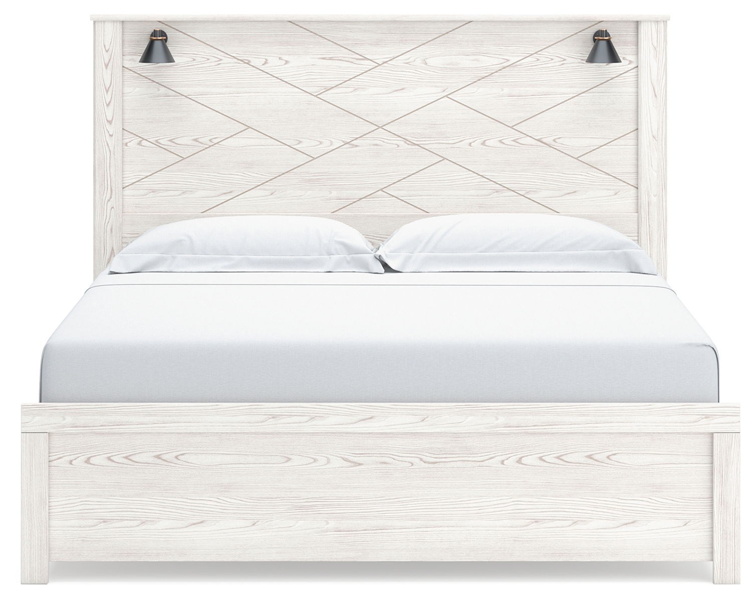 Cool, clean and casually modern. This panel bed’s rustic finish sets the tone for your calming sanctuary. Matte sconce lights and an abstract design on the headboard bring a fresh look to the bed’s simply stunning profile.