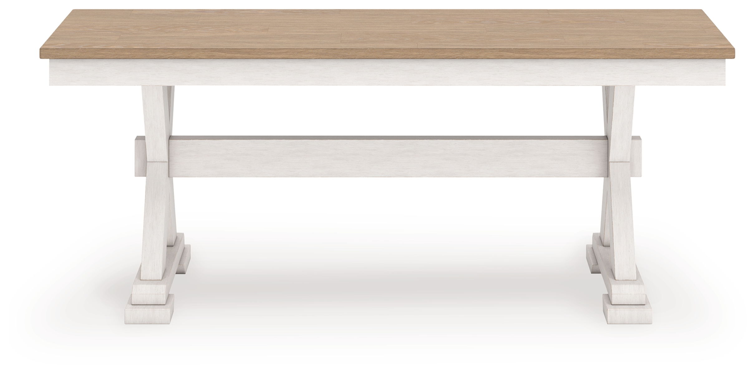 Busy breakfasts and family dinners get a dose of modern farmhouse flair with this dining bench. Its two-tone finish contrasts a light butcher block hue with antiqued white for an utterly charming effect. An effortless seating solution, the bench can tuck under your table to give you extra space to maneuver through the dining room.