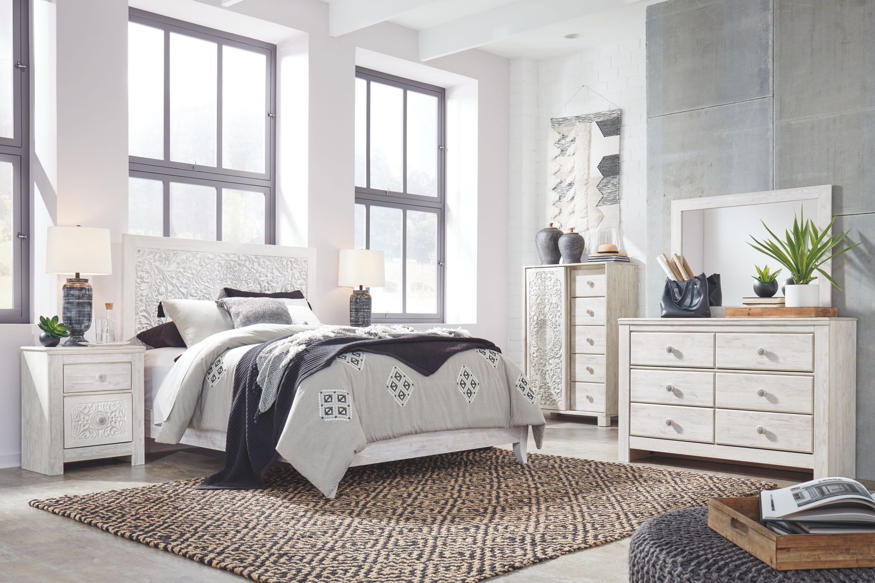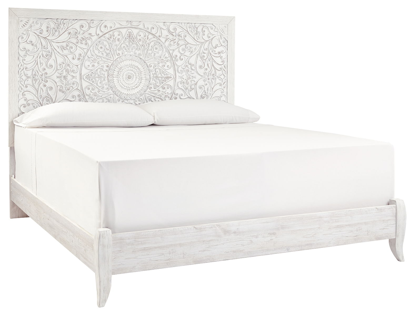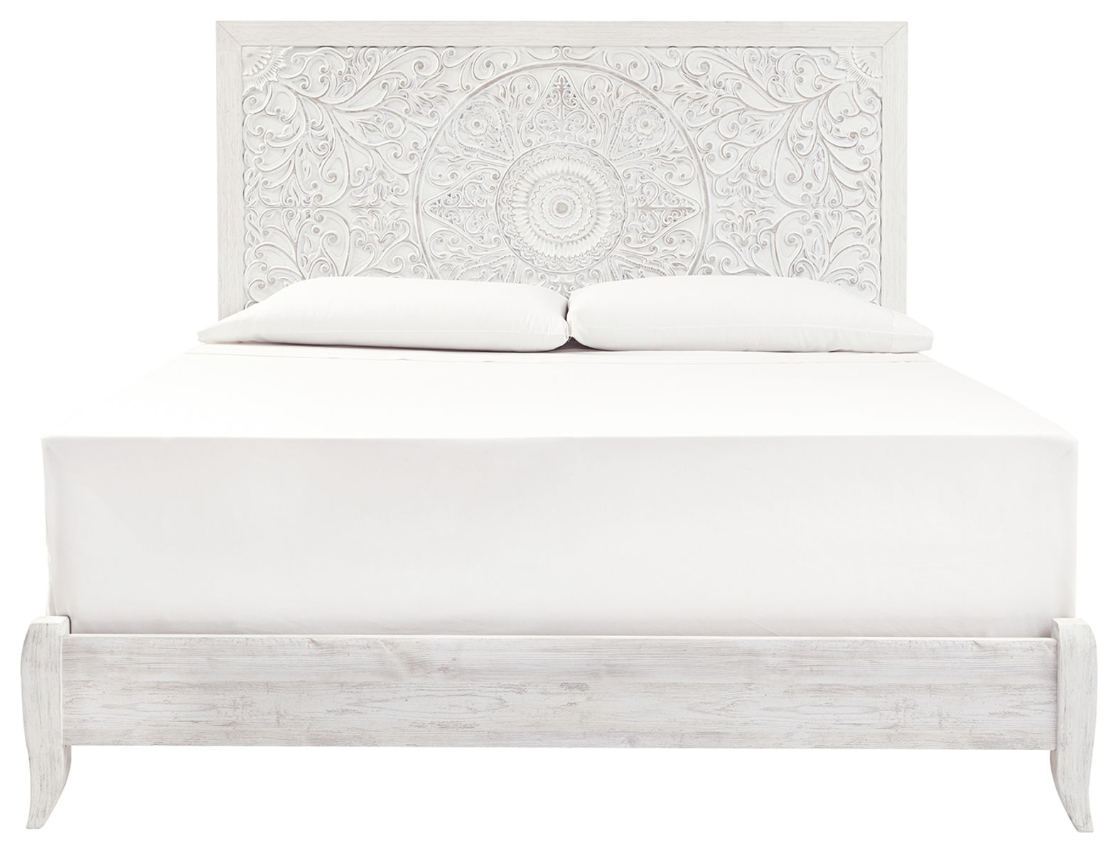 Showcase your trend-setting spirit with this bed. Inspired by bohemian tapestries, exquisite carved medallion pattern is a testament to boho-chic style. Whitewash finish sets a foundation for a room bursting with personality.