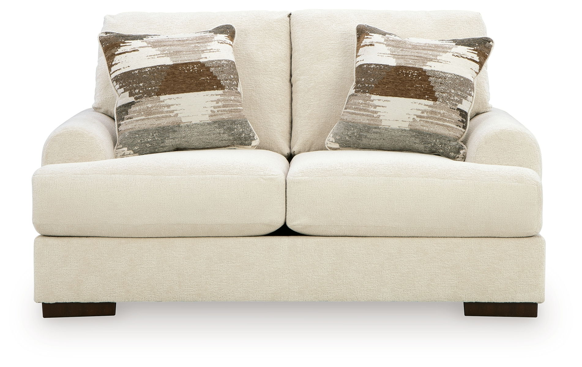 Sink into the captivating comfort of this loveseat. Its plush reversible cushions invite you to stretch out, making it an ideal spot for movie nights, afternoon naps or catching up with friends. Softly curved arms add a lovely sense of flow, while velvety soft upholstery in a warm hue pairs effortlessly with a variety of color palettes for an easy pulled-together look. Accent pillows add texture and pattern, so your space feels stylish as well as incredibly cozy.