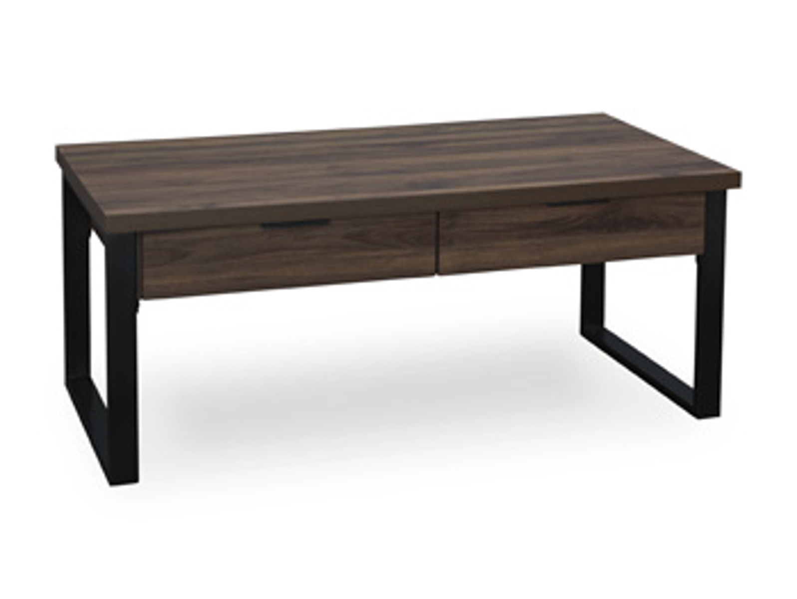 This table is all about contrast done right. A metal frame grounds the look, while replicated wood grain brings depth and character to your space. Smooth-gliding drawers offer a handy spot for remotes, magazines and more without interrupting the clean silhouette. From movie nights to morning coffee, this piece is ready for whatever the day brings.