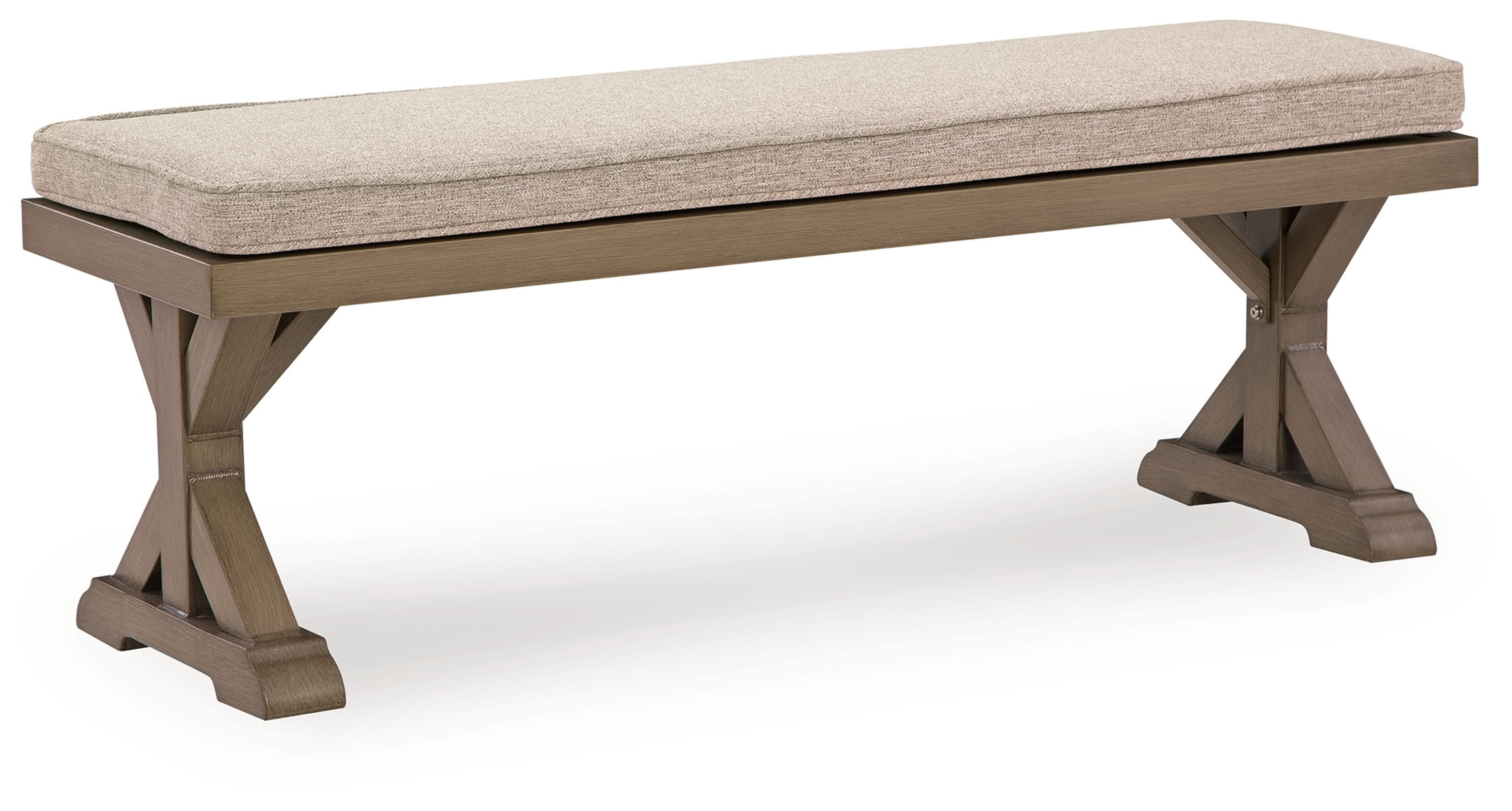Who says the great outdoors isn’t made for luxury living? This outdoor bench with cushion offers all of the high-end design, plush comfort and durability you could ask for, and then some. Its all-weather, rust-resistant aluminum frame provides the easy-breezy look you love without the high maintenance. And rest assured—the high-performing Nuvella® fabric is made to stand up to the elements.